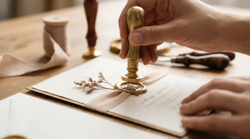 - シーリングワックス(封蝋): 招待状に高級感と特別感を加える、シーリングワックスでの封蝋作業を行います。
